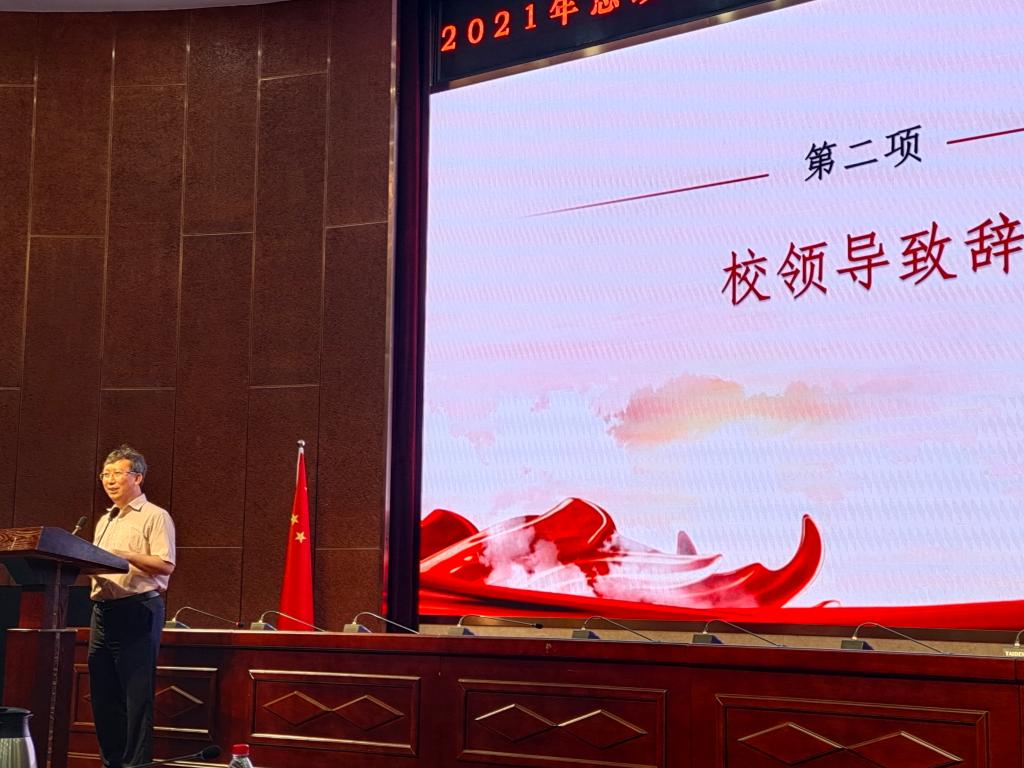在庄严肃穆的国歌声中,活动正式拉开帷幕。王启龙校长首先致辞,他指出,我校此次“大练兵”活动的举办,是认真贯彻落实习近平总书记在全国思想政治理论课教师座谈会上讲话和建党百年重要讲话精神的具体体现,是进一步提高全校教师思想政治素养和理论水平的重要载体,对加强和改进我校思想政治工作具有重要意义。在讲话最后,王校长对马院大练兵活动提出了几点希望:一是使用好大练兵的品牌,营造学院管好、教师教好、学生学好的良性氛围;二是贯彻大练兵的应有之义,做到全员参与、全院练兵;三是以拼尽最后一公里的精神,尽心打磨展示活动中的每一细节,提升思政课建设的整体水平。