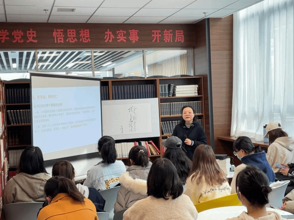 会上,廖敏老师围绕“习近平新时代中国特色社会主义经济思想”这一专题展开了学习分享。首先,廖敏老师着眼于“习近平新时代中国特色社会主义经济思想”提出的背景,以“观大势、谋全局、干实事”这三个关键词高度概括了习近平新时代中国特色社会主义经济思想的形成过程。接着,廖敏老师从新常态与新时代、新发展理念与高质量发展、实现高质量发展的根本路径和制度支撑、高质量发展的保障和方法这四个方面,系统梳理了习近平新时代中国特色社会主义经济思想的理论框架。随后,廖敏老师着重分析了三个相关问题。一是如何立足历史交汇期深刻把握“两个大局”;二是如何深入理解新常态与新时代经济层面的变化;三是如何看待中国从“制造大国”到“制造强国”的转变。最后,廖敏老师引用习近平总书记对新时代中国青年的寄语,鼓励西外学子要好好学习,掌握本领,为新时代中国特色社会主义经济建设服务,为中华民族伟大复兴的中国梦服务。
