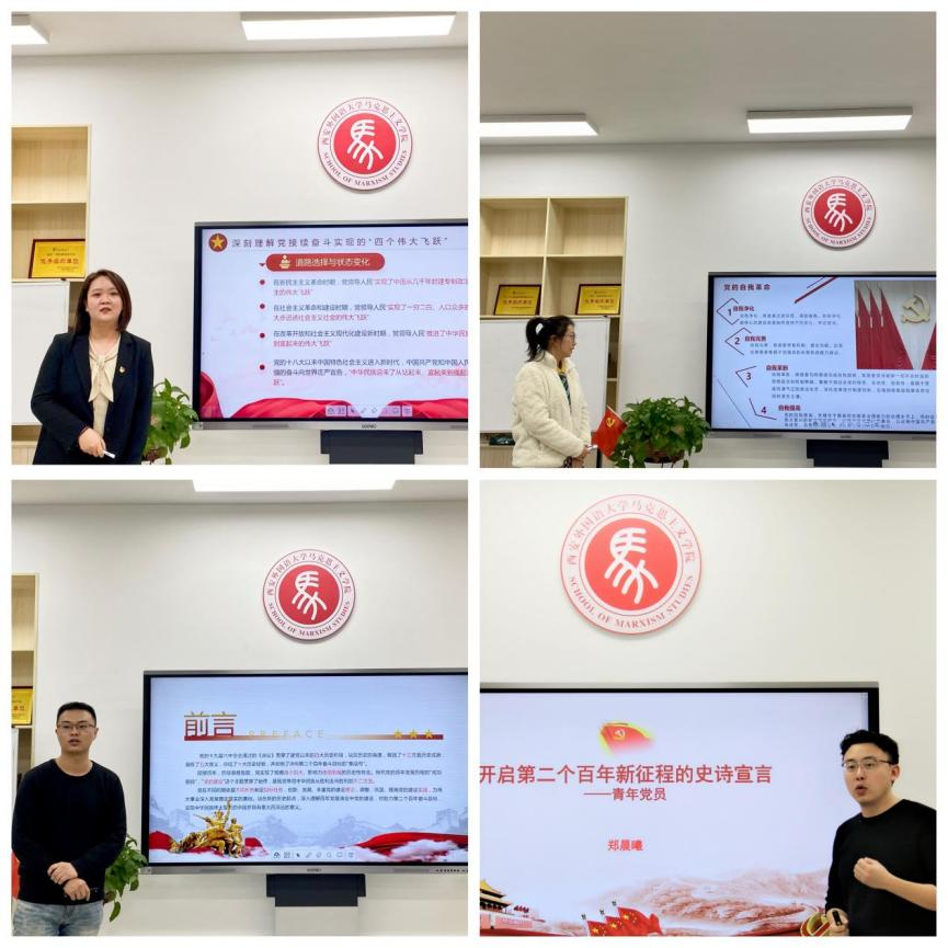 随后,肉漫屋 2020级、2021级研究生分别围绕十九届六中全会精神展开宣讲。评委老师们根据个人宣讲内容依次进行了专业点评,对同学们的精心准备给予充分肯定,对存在的不足提出改进建议,希望同学们能够做到内容严谨、功底扎实,充分发挥好青年宣讲队伍的优势作用。