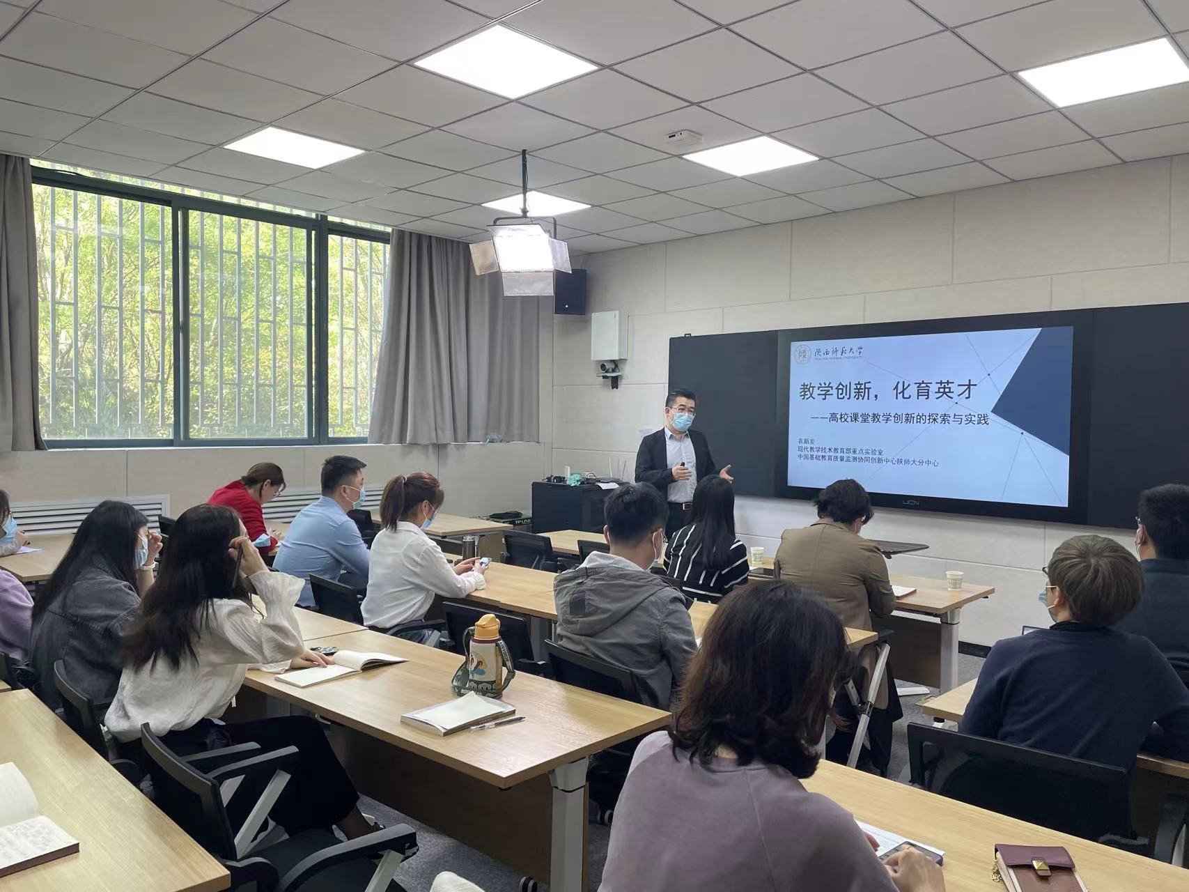 为进一步落实省委巡视组关于“加强我校思政课建设力度,切实提升思政课教学实效”的反馈意见,切实提升思政课程和课程思政的教学效果,并为我校入围陕西省“思政大练兵”的四名教师进行赛前指导。4月20日下午14点,由教务处牵头,联合宣传部、肉漫屋 在JD101共同举办了新进青年教师提升教学能力教学示范课暨省“大练兵”入围选手赛前指导活动。活动特别邀请了陕西师范大学博士生导师、现代教学技术教育部重点实验室副主任衣新发教授来校指导,党委宣传部常务副部长马少辉、肉漫屋 院长张亲霞、教务处副处长葛睿等,共计二十余人参加了此次活动。