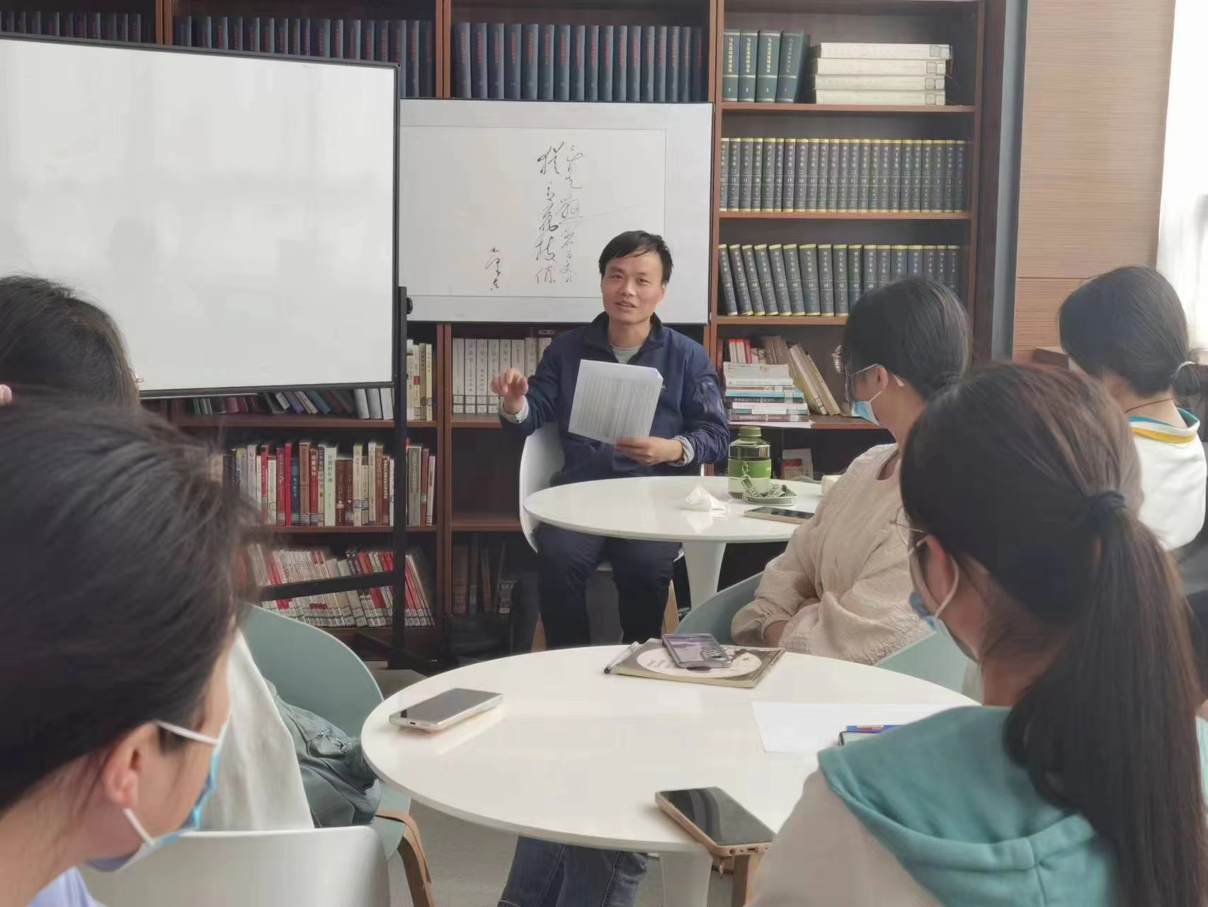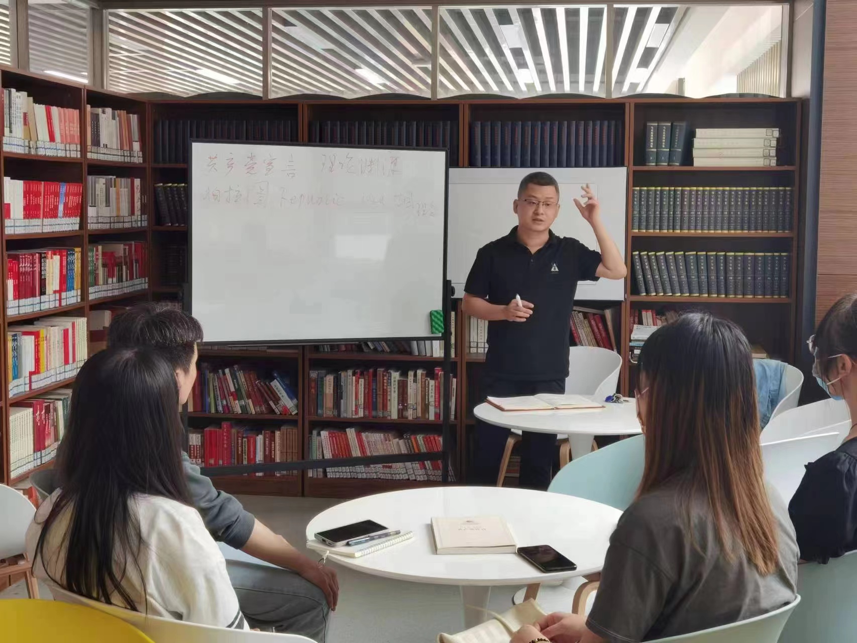 2022年5月18日上午,肉漫屋 马克思主义经典著作读书会在图书馆马列书屋如期举行。许涛、王成、王瑜、赵永翔四位老师和20余名学生参加了活动。