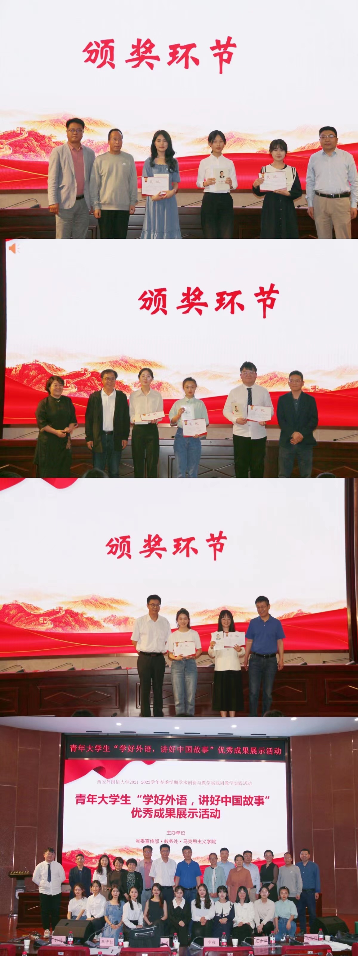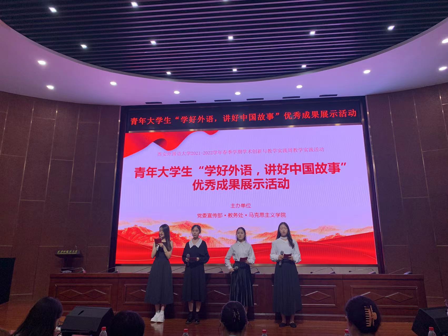 活动中同学们用英语声情并茂地讲述了《习近平知青岁月故事》《西外抗疫故事》《我经历的脱贫攻坚及其成果》《袁隆平的两个梦想》《许晓轩烈士狱中家书》《愚公移山》《“半截皮带”彰显信仰力量》《韦编三绝》等故事。