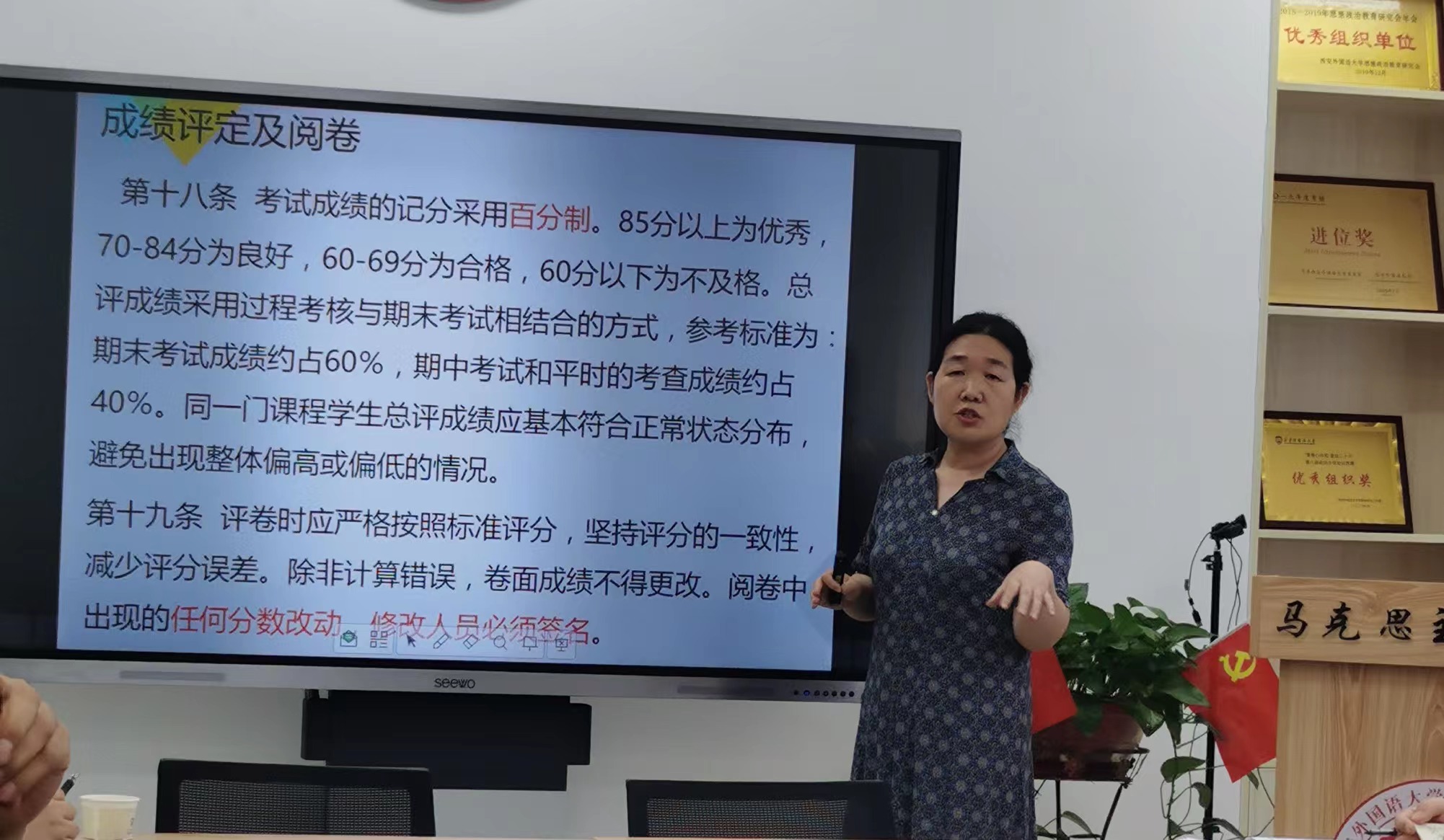 会上,按照学校关于期末考试相关文件的要求,教学督导王香萍副教授从试题命制、监考安排、考试纪律、教师阅卷、试卷归档等方面做了规范细致的讲解,对监考全过程所涉及到的细节问题进行了说明。