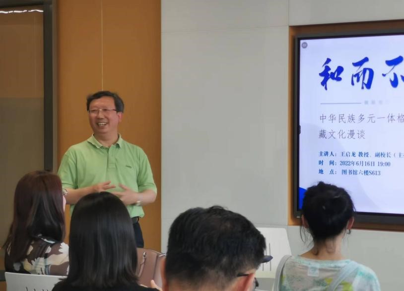 近日,为深入学习贯彻习近平总书记关于加强和改进民族工作的重要思想,帮助大学生深刻理解核心要义、精神实质、丰富内涵和实践要求,2022年6月16日晚,王启龙副校长(主持行政工作)以“和而不同—中华民族多元一体格局下的藏文化漫谈”为主题讲授了一场学术味十足又活泼生动的思政课。我校共计30余名师生参加了本次活动。