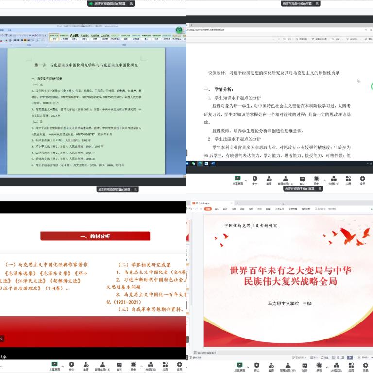 为保证学院教学工作规范有序开展,进一步提升新课教师的教学质量,8月27日-9月16日,肉漫屋 举办两场新学期“上新课”说课活动。本科“习近平新时代中国特色社会主义思想概论”课程和研究生“中国化马克思主义专题研究”课程新上课教师全部进行说课展示,学院班子成员、教学委员会成员、督导委员会成员参加,研究生公共政治课程小组旁听。