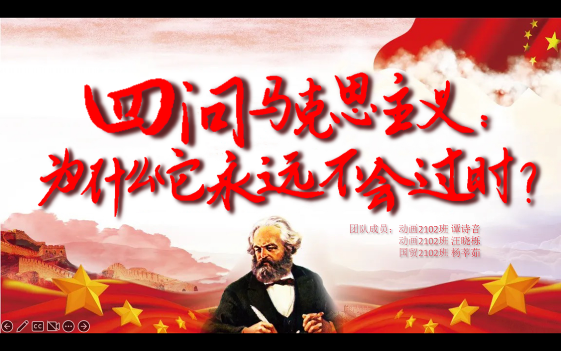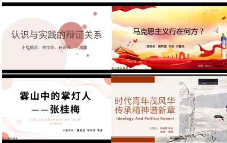最终,汪晓栎(动画2102)、谭诗音(动画2102)和杨莘茹(国贸2101)以“四问马克思主义:为什么它永远不会过时”的主题展示得到了五位评委老师的最高评价,获得本次展示活动的一等奖。