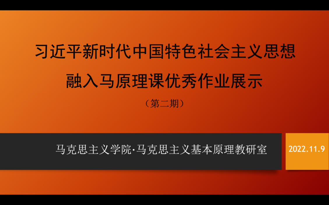 为深入学习贯彻习近平新时代中国特色社会主义思想和党的二十大精神,引导和培养新时代大学生形成良好的理论素养和强烈的现实关切,2022年11月9日下午,马克思主义基本原理教研室于线上举办了“习近平新时代中国特色社会主义思想融入马克思主义基本原理课”优秀学习成果展示活动(第二期)。来自英文学院、经济金融学院、商学院、新闻与传播学院、旅游学院、艺术学院等多个学院的近30名本科生,以及原理教研室、习近平新时代中国特色社会主义思想教研室的教师代表参与了本次活动。