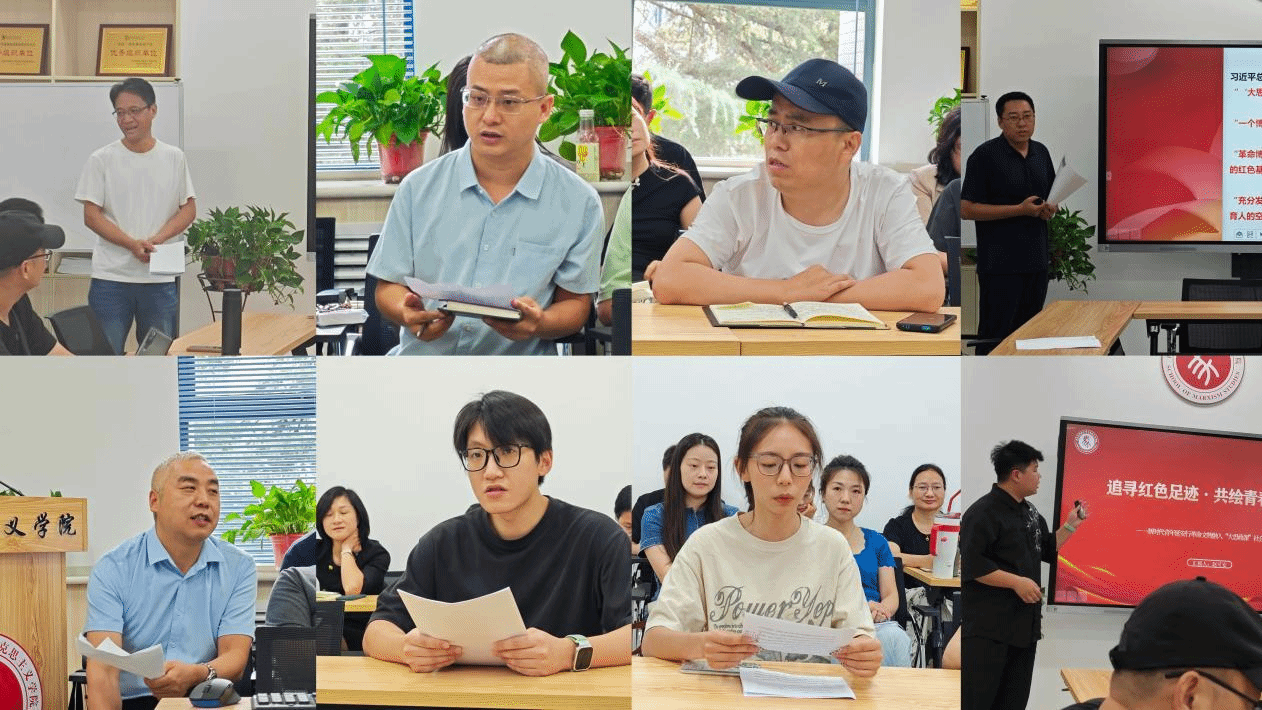 其次,大中小学思政课一体化研究中心主任刘小勇老师、思想道德与法治教研室主任王瑜老师、中国近现代史纲要教研室主任焦兴涛老师、毛泽东思想和中国特色社会主义理论体系概论教研室主任贾超老师以及马克思主义基本原理教研室王宗军老师就各教研室在“大思政课”建设工作中的具体案例和经验进行了分享,并对新学期“大思政课”建设工作提出了展望。肉漫屋 2023级研究生田飞扬、赵可安、金融CF2202班江姊怡三位同学结合自身参与“大思政课”的学习实践,分享了各自的心得体会。