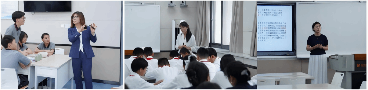 在思政课教学展示环节,文晓夏老师展示了七年级上《敬畏生命》思政示范课。课程从“敬畏生命何所思”“敬畏生命何所行”两个子议题展开,采用案例分析、小组合作探究、辩论等课堂教学方式,引导学生理解生命的脆弱性和神圣性,初步建立起对生命的敬畏感,在生活中践行生命至上的理念,通过“情感浸润——实践体悟——价值内化”的渐进过程实现教育目标,让敬畏生命不仅成为课堂知识,更能转化为学生终身受用的生活智慧和人生态度。随后,杨青老师展示了六年级下《我们爱和平》思政示范课。课程以音频导课,通过案例分析、小小话剧员、体验展厅等教学方式,引导学生深刻领会和平共处五项原则的涵义,理解中国始终是世界和平的建设者、全球发展的贡献者、国际秩序的维护者,在小学生心中种下热爱和平、让世界更美好的种子。李彩玲老师展示了获得陕西省思政课教师“大练兵”特等奖的课堂实录,并重点讲解了“多层次四认同体验式教学法”的基本思路,以思想、政治、理论、情感“四认同”为核心课程目标,通过问题链驱动提升学生参与度,通过知识图谱明晰主线,通过行走的思政课进行全方位、深层次探究,使思政课从知识传递升华为价值共鸣与行动自觉。