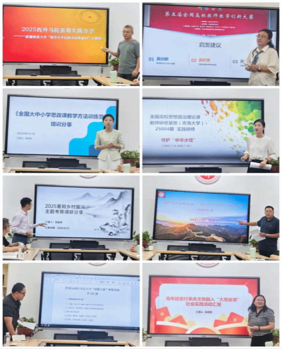暑假期间,学院精心统筹、积极组织师生前往北京、天津、青海、新疆、河南以及陕西延安、西安、岚皋等地开展课程研修、社会实践和村社文化调研活动,取得了丰富的研学成果。在研学总结会上,李丹、吴家虎、李彩玲、王瑜、贾超、吴蕊蕊、张洋、李思远等8名教师依次发言,分别汇报了研修观摩和考察调研的心得体会。
