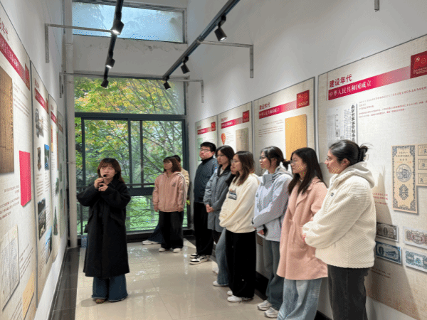 11月10日,毛泽东思想和中国特色社会主义理论体系概论教研室师生走进学院新设立的党史党建现场教学基地,参观“奋斗百年路,启航新征程——革命文物中的百年党史”展览。由学院党员研究生组成的“红色讲解员”团队,以革命文物为切入点,通过情景再现、互动问答等形式,将百年党史转化为可感知的“活教材”。作为思政育人新阵地,展览所在基地将常态化开放,推动党史学习从“教室课堂”向“实景育人阵地”延伸。