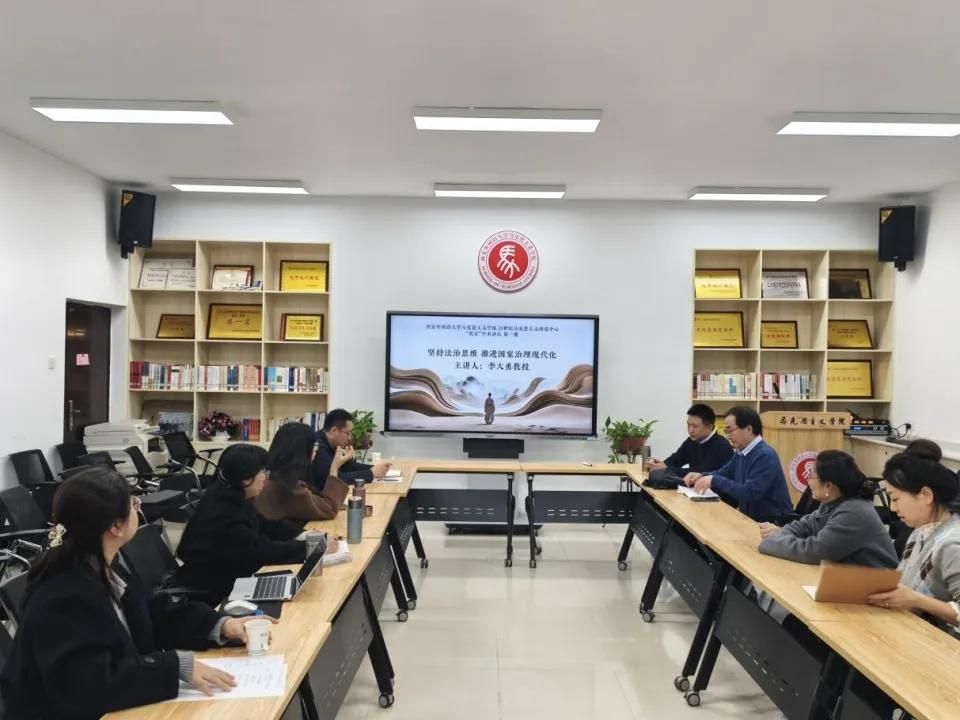 为认真学习贯彻《习近平法治思想学习纲要(2025年版)》,坚持不懈用习近平新时代中国特色社会主义思想武装师生头脑、助力学院学科建设,11月21日下午,21世纪马克思主义研究中心“秋实”学术讲坛第一期在教学楼I区206顺利举办。本次论坛特邀西北政法大学教务处处长、博士生导师李大勇教授作题为“坚持法治思维 推进国家治理现代化”的精彩学术讲座。李永虎副院长(主持行政工作)代表学院对李大勇教授的到来表示热烈欢迎。此次会议由研究中心负责人彭刚教授主持。