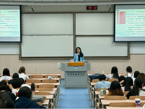 为深入贯彻习近平总书记对学校思政课建设作出重要指示精神,推动学校思想政治理论课教学改革与创新,加强学校思想政治理论课内涵式建设,2025年6月19日晚,学校党委副书记马洁为经济金融学院、艺术学院的2024级部分学生讲授“从教育大国迈向教育强国”的专题思政课。