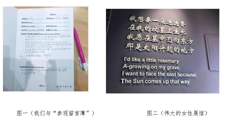 英语专业赵微:前往纪念馆访谈并拍照;分析记录两馆异同;完成书写两馆异同;完成书写实践收获与感悟。