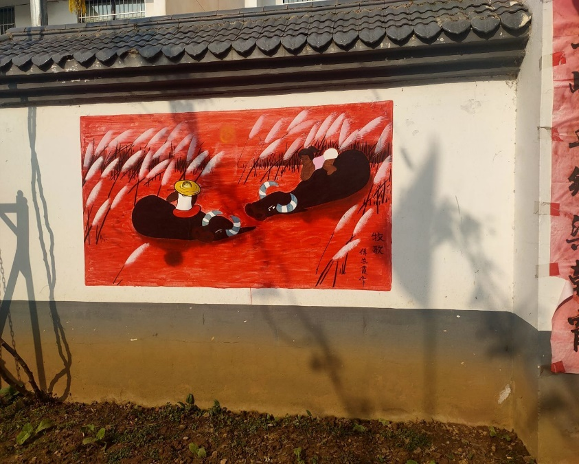 高冠村村民家和墙上的民俗画