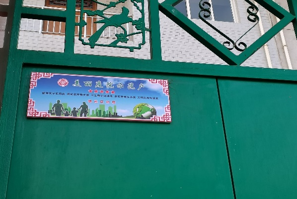 在走访的过程中,我们还发现家家户户新式的农村小院落大门帘上还写着自己的标语“贵在自立强”,“宁静致远”,这些都体现出了浓浓的生活气息和后寨村居民对自己家庭的期冀。除此以外,还有几户特别的家庭,他们绿色的大铁门上贴着瞩目的红色称号“好媳妇”,“卫生模范户”,“人居环境标兵户”。通过村干部的介绍,原来是每年村里都会根据每家每户邻里的投票和根据日常风评表现来评选出来优秀家庭,也算是给所有村民树立榜样。